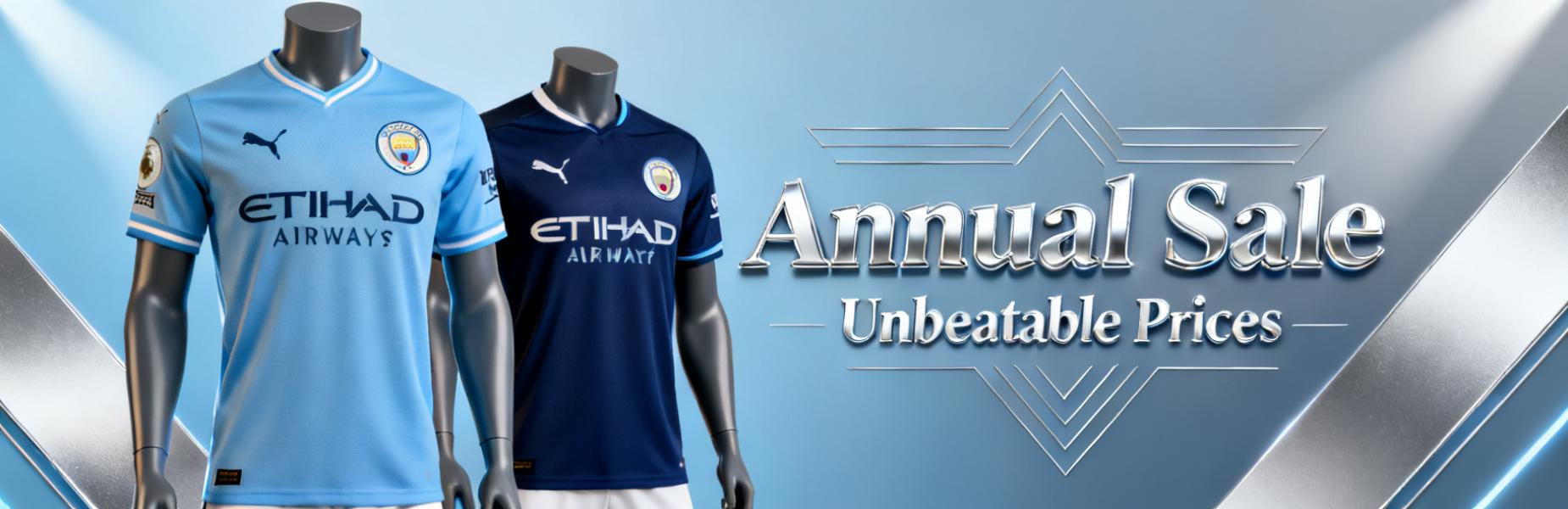 Modern dominance, sky-blue style. Rock the look of the Etihad era with our Man City jerseys. Synonymous with winning and a sleek, powerful aesthetic. A must-have for fans searching for the signature style of today's Premier League giants.